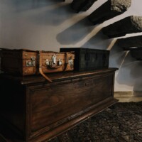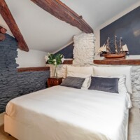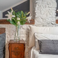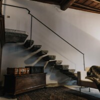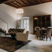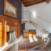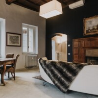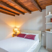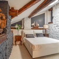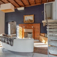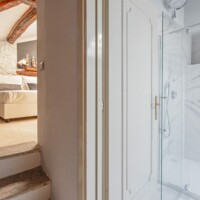 Composizione: 2 camere da letto con letti matrimoniali, una al piano terra e una al piano superiore, ritagliata nella pietra e illuminata da una finestra vista cielo. Il bagno total white è dotato di doccia e ogni confort. Le camere da letto sono separate da un soggiorno molto ampio e accogliente, disposto intorno al camino e affacciato sulla corte principale della villa.