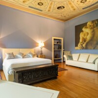 Gli affreschi storici sono l’elemento caratterizzante di questa suite, ricoprono infatti l’intero soffitto della stanza. Questa Luxury Suite ha una superficie di 90mq.